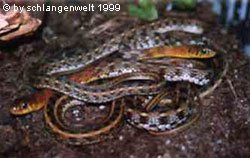Da die Schlangen nicht sonderlich groß werden, genügt ein kleineres Terrarium von etwa 60X40X40 cm (für ein Pärchen reichen 80X40X40 cm), um ihren Ansprüchen gerecht zu werden. Pflicht ist für diese Natter ein großes Wasserbecken, das sie auch ausgiebig benutzten. Meine Tiere halten sich eigentlich fast den ganzen Tag zumindest in der Nähe der Wasserschale auf und baden häufig.