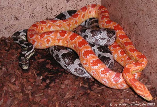 Die Kornnatter (Pantherophis guttatus) ist die wohl am häufigsten in Terrarien anzutreffende Schlange. Ihre hübsche Zeichnung, Farbenvielfalt und problemlose Haltungsweise macht sie besonders bei Terraristik-Anfängern beliebt.