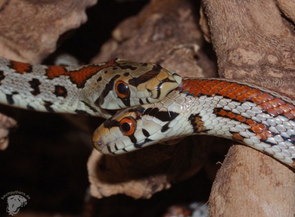 Da Leopardnattern auch beim Füttern sehr nervös sind, sollte man sie entweder getrennt füttern oder besser einzeln halten. Meine Tiere fressen nur recht selten von der Pinzette, das Futter wird am besten akzeptiert, wenn man es vor oder in das Versteck legt.