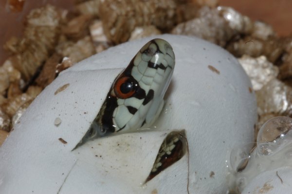 Nach der Winterruhe sollte man die Weibchen zunächst gut anfüttern. Sobald die Weibchen 2-3mal Futter aufgenommen haben, kann man ein Männchen in das Becken setzen. Männchen reagieren in der Regel sehr schnell auf aufnahmebereits Weibchen, die eigentliche Kopulation findet jedoch meist im verborgenen statt. Manchmal kann man auch Paarungsbisse während der Paarung beobachten. Die Weibchen legen einige Tage nach einem Prelaying-Shed recht kleine Gelege mit 3-6 walzenförmigen Eiern, die jedoch ungewöhnlich groß und lang sind. Die Eier lassen sich bei Standard-Parametern (27°C, hohe Luftfeuchtigkeit, eingebettet in leicht feuchtes Substrat, z.B. Vermiculite oder Moos) einfach inkubieren, nach 60-70 Tagen schlüpfen dann die Jungtiere, welche man einzeln in kleinen Boxen halten sollte. Nach der ersten Häutung fressen die schon beim Schlupf recht großen Babys in der Regel problemlos aufgetaute Babymäuse, lebendige oder leicht behaarte Vielzitzenmaus-Babys jedoch bereitwilliger. Nicht fressende Jungtiere sollte man versuchen einzuwintern, im nächsten Frühjahr wird dann oft freiwillig Futter akzeptiert.