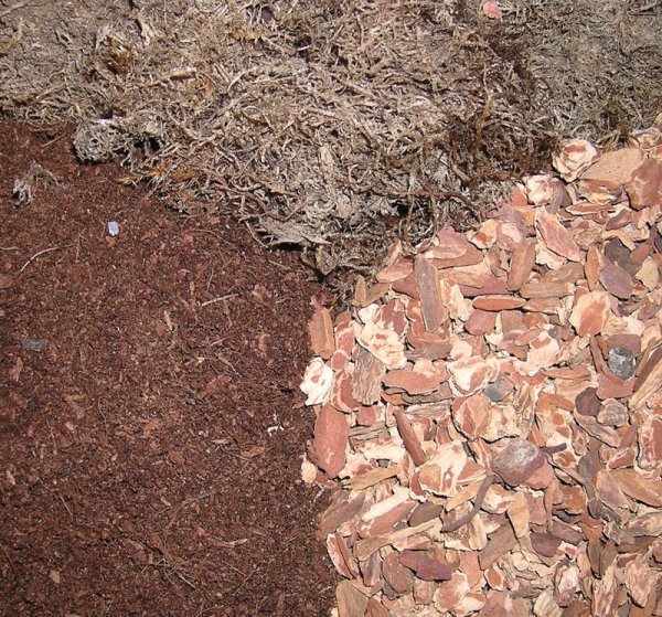 Reptiliengeeigneter Rindenmulch ist für viele Kletternattern und Riesenschlangen gut geeignet und wird als Substrat regelmäßig im Zooladen angeboten. Die Kotentfernung ist allerdings mitunter problematisch, da die Exkremente mit dem Mulch verkleben und sich häufig nur mit einem großen Substratklumpen vollständig entfernen lassen. Viele Rindenmulchsorten aus dem PFlanzengroßhandel verbreiten allerdings einen eher unangenehmen Geruch, wenn sie aus Baumrinden mit hohem Anteil an ätherischen Ölen hergestellt worden sind. Solche Mulchsorten sollte man nicht verwenden