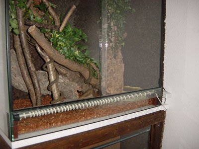 - Ich finde die Art der Heizung für größere Terrarien (Glas) besser, dadurch erspare ich mir die Wärme durch mehrere eingesetzte Spotstrahler, weniger Watt, also auch weniger Stromkosten.